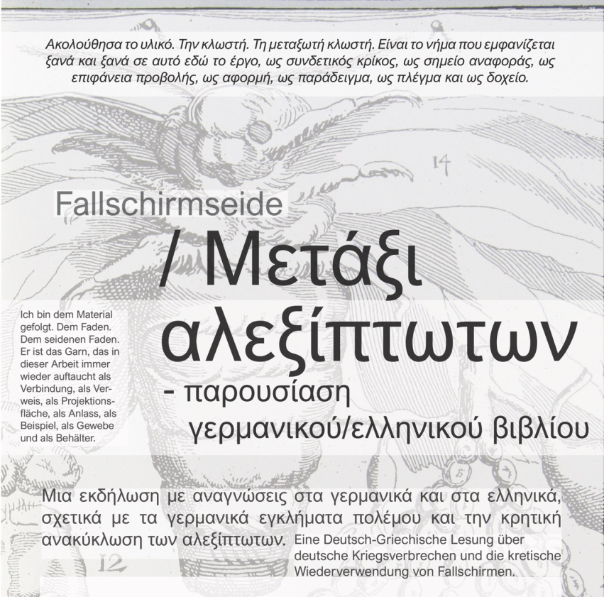 Reading event with an open discussion session, in German and Greek with the artist and Maria Sereti with a simultaneous projection of the research material that led to the publication of the homonymous book. [Link (GR), link (ENG), book]