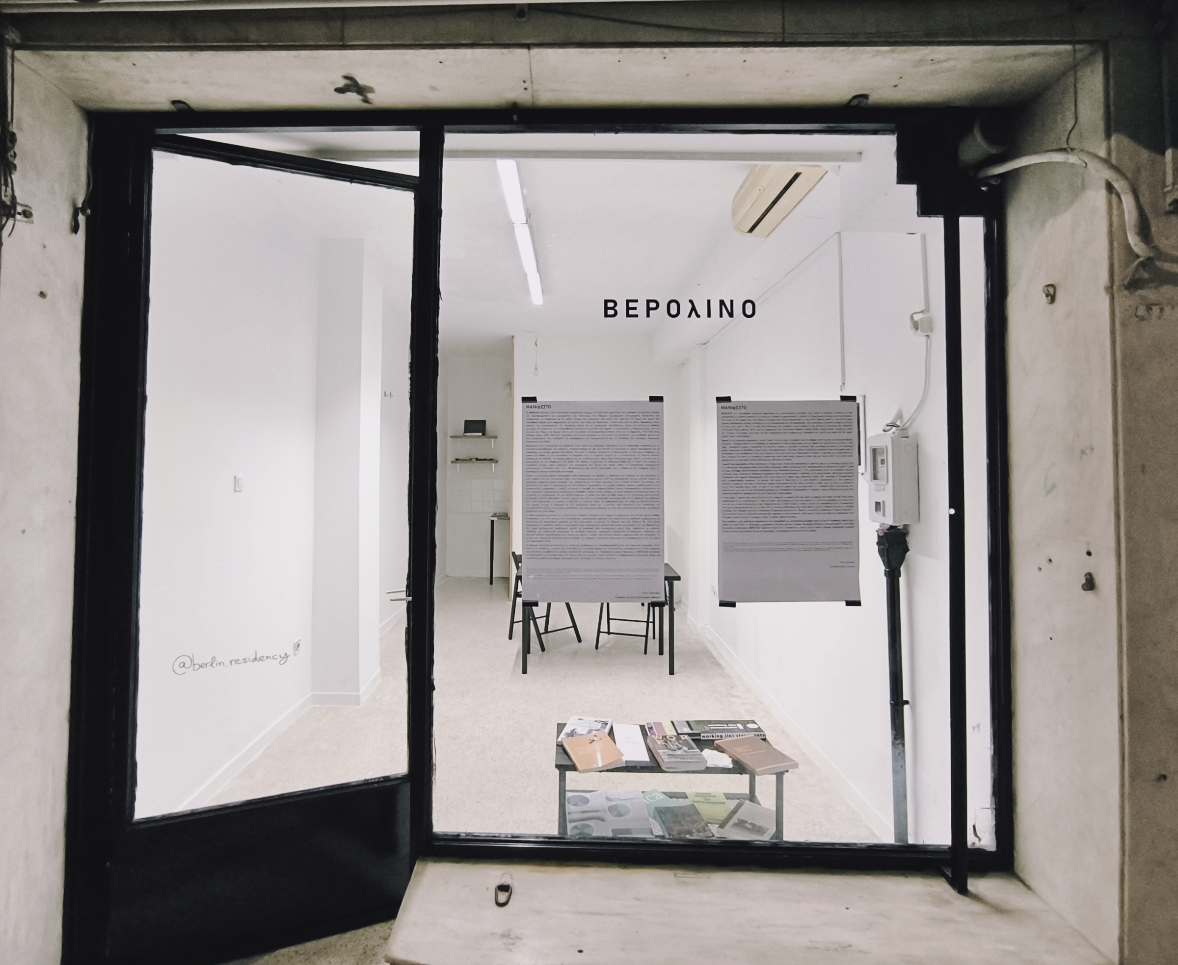 Creation and curation of the conceptual performative experiment @berlin.residency that seeks to critically comment on the accessibility of cultural workers to various art residency programmes. [Curatorial text (GR&ENG), Instagram page, location, press (ENG), press (GR)]